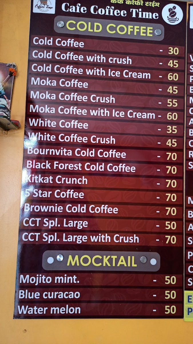 Cafe Coffee Time boasts a diverse menu that caters to a variety of tastes, ensuring there's something for everyone. Start your day with a refreshing cold coffee, where you can choose among classics like Cold Coffee with Ice Cream or indulge in mouth-watering variants like Bournvita Cold Coffee and Brownie Cold Coffee. For those with a sweet tooth, the cafe offers delectable flavors such as Mastani—including rich mango and creamy chocolate options—that will transport your taste buds to dessert heaven.